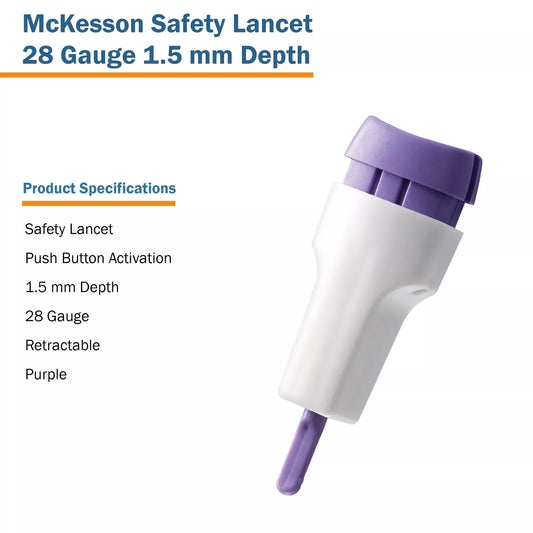 McKesson Safety Lancet 28 Gauge 1.5mm Retractable Push Button Activation box 100